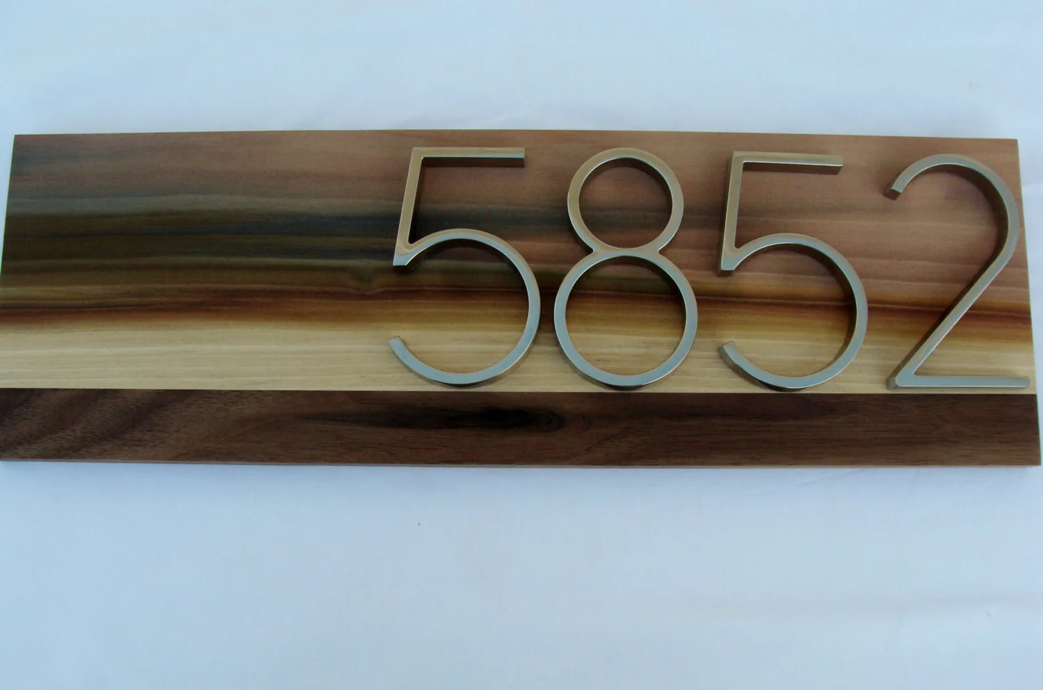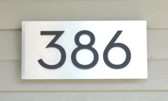 Oooh. Now, I really like this one because the font is all retro and sassy, BUT, I absolutely hate when long house numbers are in written out word form. Like, "Three thousand twenty nine". What?! Not because it looks bad, but because when I'm trying to find a house for the first time, and I'm looking at the numbers, I have to super slow down my driving to read it and then put it altogether in number form in my head. By that time, I've been driving all creepy slow by someone's house, and their neighborhood watch has been alerted.