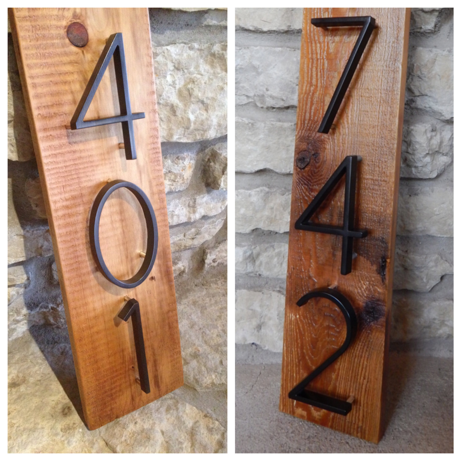 I'm not a big rustic-look kinda gal, but I do like these numbers on the lacquered salvaged barn wood board. Yay for salvaged barn wood! They come in raised or flush-mount numbers.