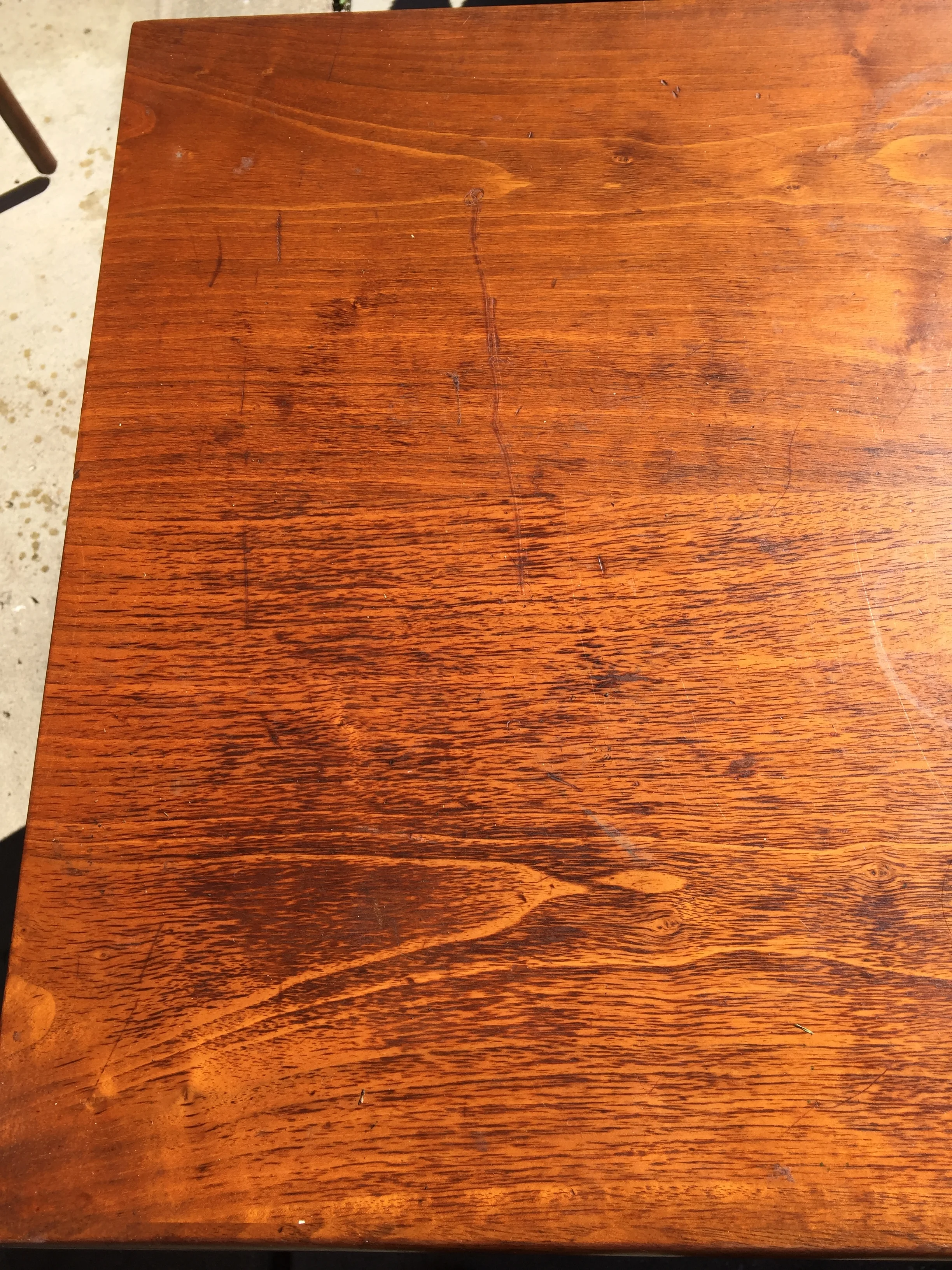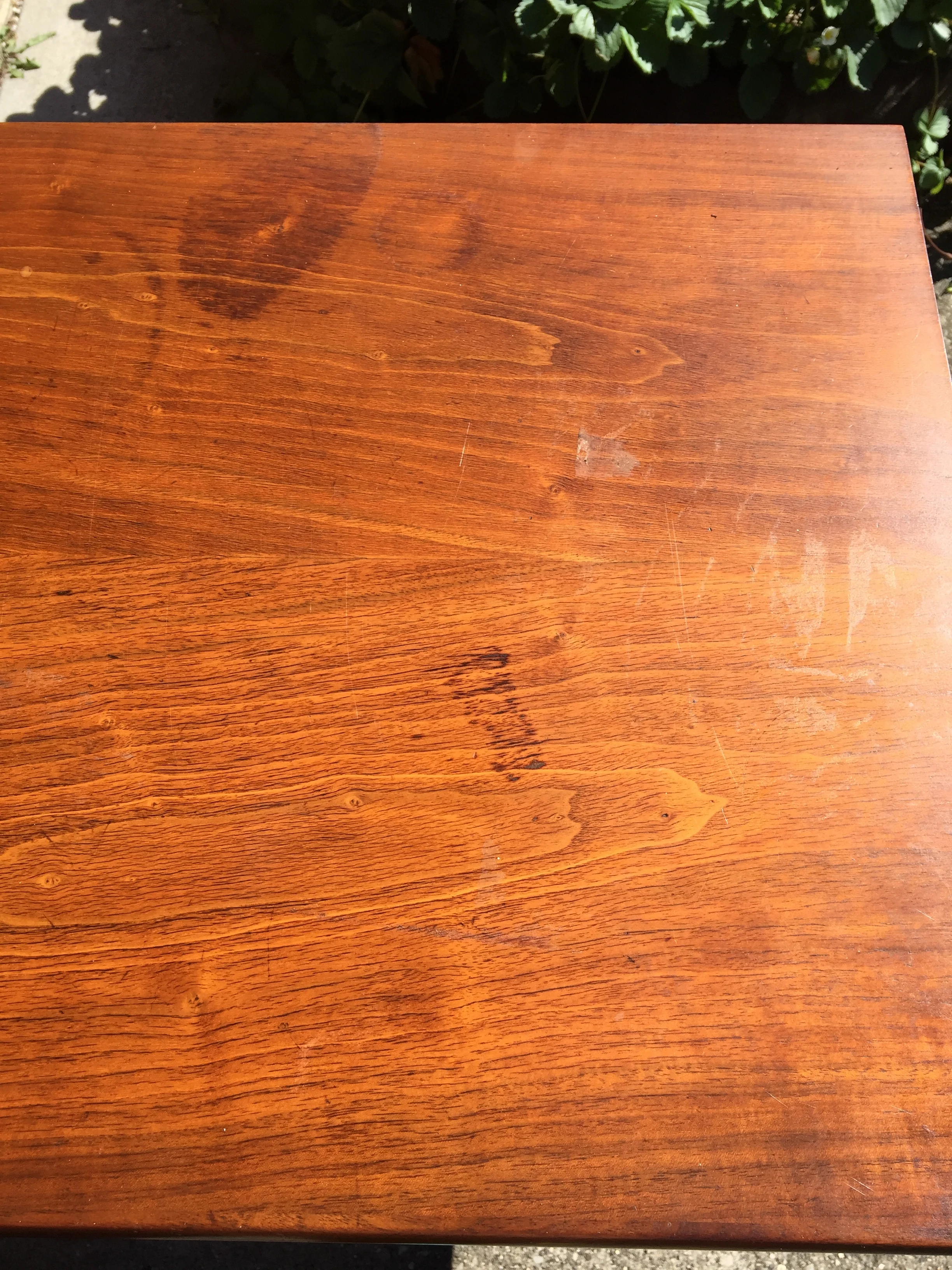 The sides, fronts, and legs of this cabinet are in really good condition, but the top is a mess. There are scratches and the original finish has started to deteriorate big time. This tells me that the top needs to be refinished, and that it is not just a matter of giving it a good cleaning.