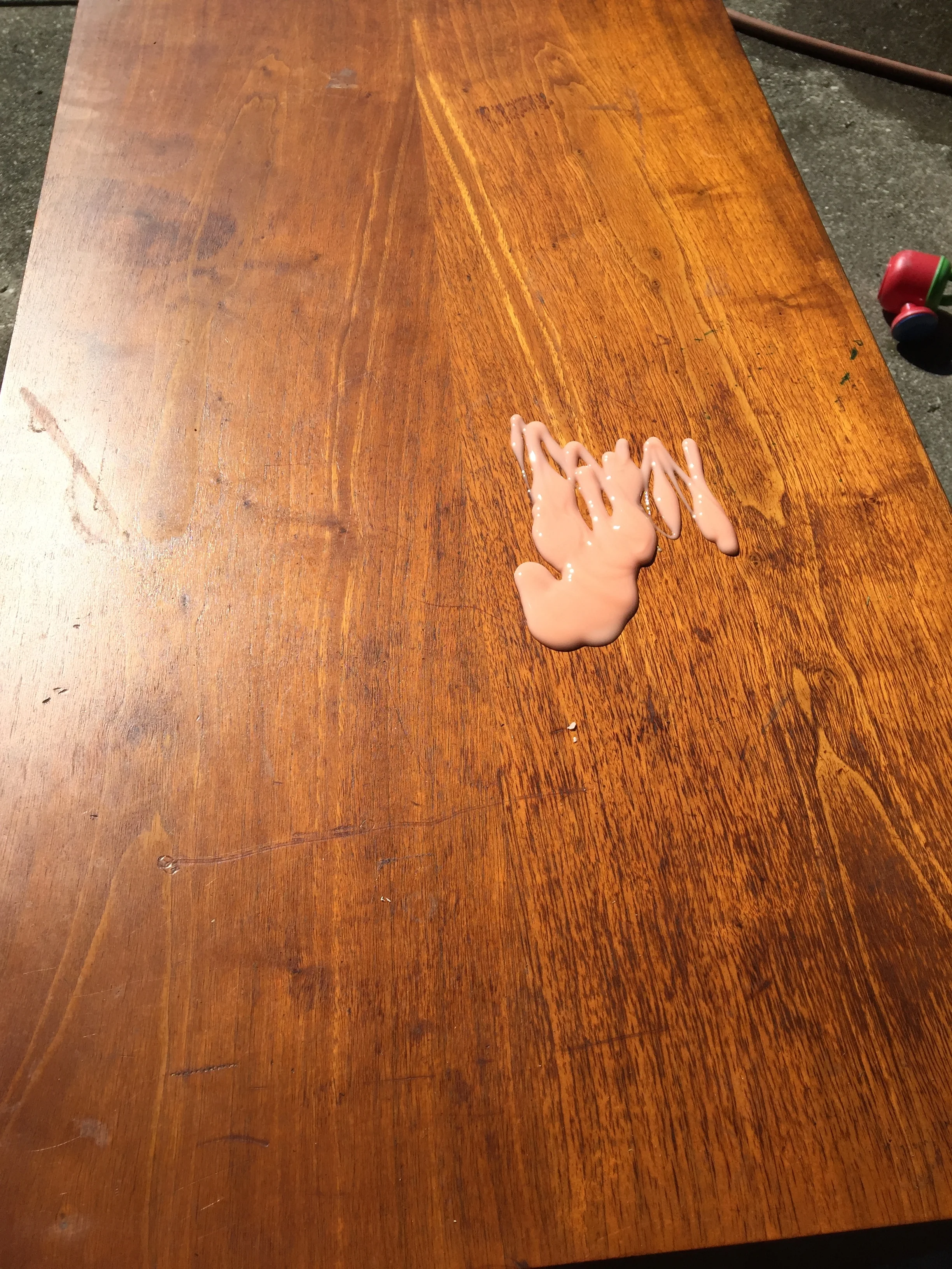 3. Scrape that stripper off. (If you didn't use stripper, skip this step. Obviously.) Okay, so once your stripper has done its job (tip her, hahahaha, love my ridiculous stripper jokes), you're going to scrape off the resulting goo (and try not to get it on your hands - I mean, you won't die, but still...chemicals) with a "plastic scraping tool". Or at least this what they tell you on the container. I just use old gift cards or credit cards I don't need (consider the card garbage if you do this), cuz I'm too cheap to buy stuff I don't really need. Now, before you scrape everything off, check to make sure the stripper is done working. Just scrape a small area, and if it looks like you're scraping down to wood, you're good. If it looks like there's still some finish on there, let it work a little longer.