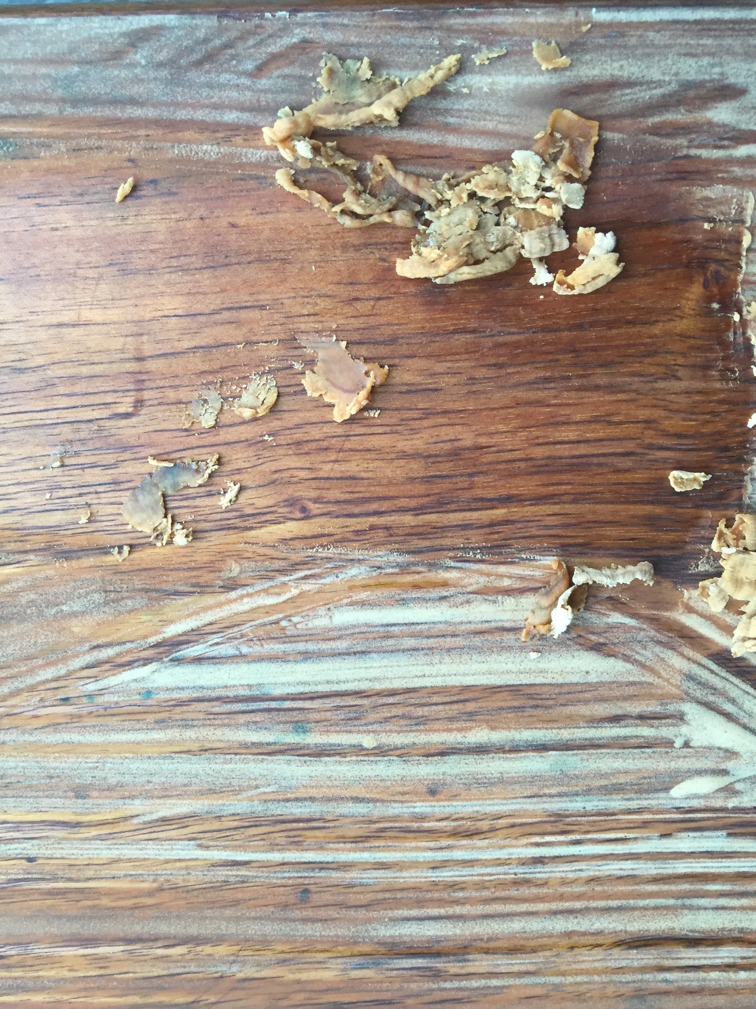 I scraped a little part of it here, and I can see the stripper did its magic all the way down to the wood.