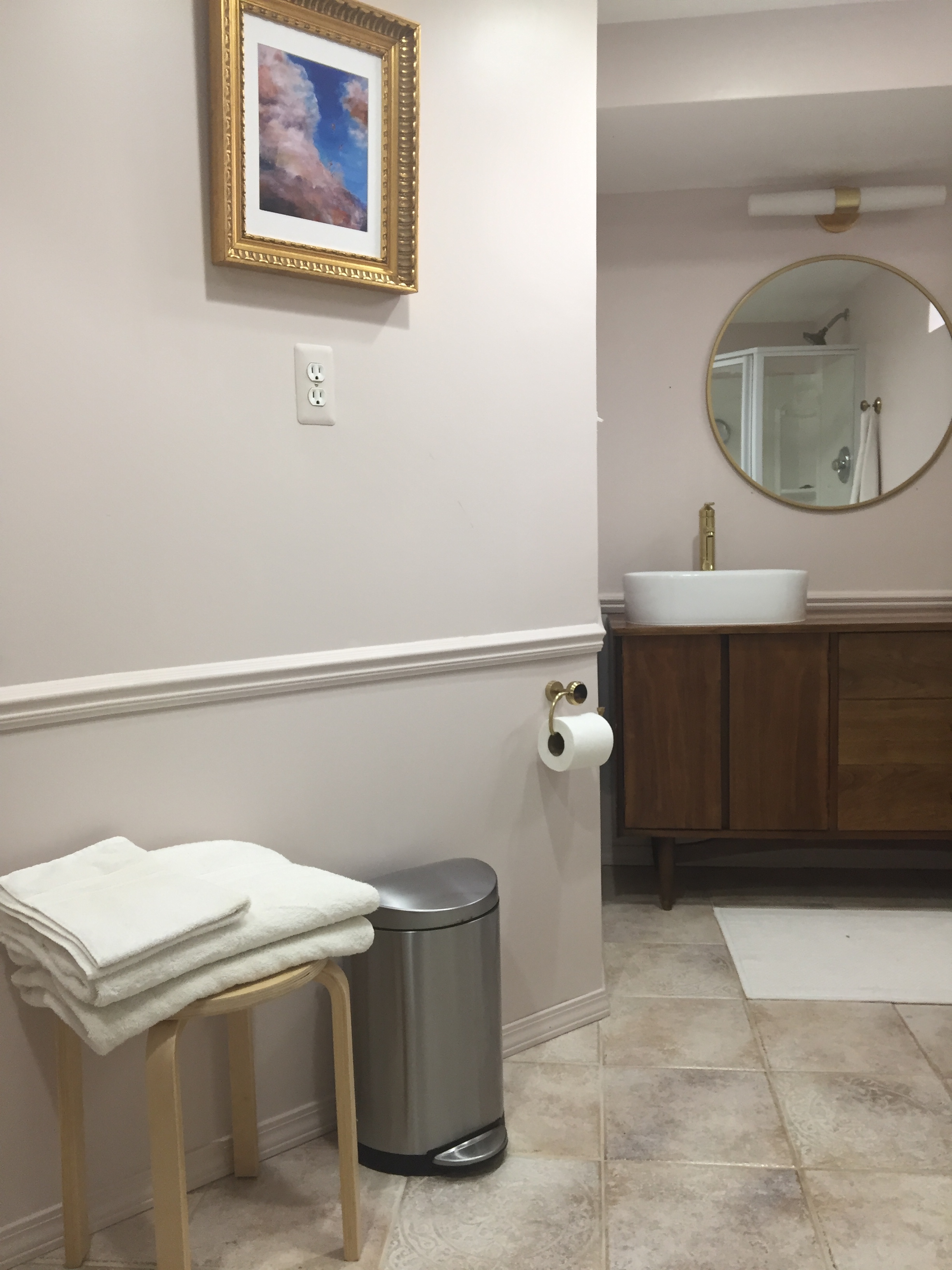 SO, that's it! YAY! It seems like such a little thing, but I'm so happy to have this done. There are always a million things that are half-done floating around in my brain and haunting my to-do lists. And to have this off of it is a big thing. Seriously. The kids love having another bathroom and love to use this one just because it's "new" and exciting. And it's been 3 years since the basement flooded, so they don't really even remember it from before.